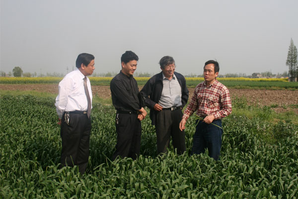 江蘇中江種業(yè)股份有限公司總經(jīng)理、推廣研究員何金龍同志,今天下午來到公司“寧麥14”種子生產(chǎn)基地,認(rèn)真考察了寧麥14基礎(chǔ)種提純復(fù)壯和生產(chǎn)情況,聽取了生產(chǎn)技術(shù)人員的情況匯報(bào),并就寧麥14種子生產(chǎn)技術(shù)、栽培措施以及后期管理等進(jìn)行了詳細(xì)的工作指導(dǎo)。同時(shí)考察了寧麥14的示范田,對(duì)寧麥14示范基地的生產(chǎn)、管理進(jìn)行了充分的肯定。