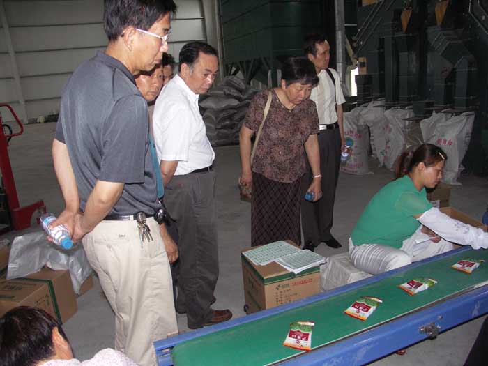2007年,江蘇中江種業(yè)董事長霍義寬先生陪同江蘇省農(nóng)林廳劉愛國副廳長(右二)視察我公司加工儲運中心。