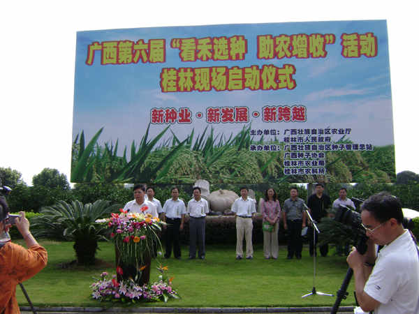 自治區(qū)農(nóng)業(yè)廳韋祖漢副廳長主持了啟動(dòng)儀式,農(nóng)業(yè)廳張明沛廳長、全國農(nóng)技中心鄧光聯(lián)副主任、自治區(qū)農(nóng)科院鄧國富副院長、南寧市李國忠副市長等領(lǐng)導(dǎo)以及全區(qū)14個(gè)市農(nóng)業(yè)局分管領(lǐng)導(dǎo)、種子站代表、企業(yè)代表等出席活動(dòng)開幕式。