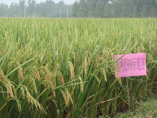 2009年是我公司兩系雜交秈稻新品種“新兩優(yōu)6380”在高郵市推廣的第三年,該品種以其優(yōu)異的表現(xiàn)獲得了種植農(nóng)戶和推廣部門的一致好評,今年銷售量占高郵市雜交秈稻市場總量的一半以上,在菱塘回族鄉(xiāng)80%的面積都是種植的該品種,一般畝產(chǎn)1300斤,高產(chǎn)田塊超過1500斤,千畝高產(chǎn)方比比皆是。今年初又引進我公司最新國家審定的兩系雜交秈稻新品種“鹽兩優(yōu)888”示范種植,百畝攻關(guān)方測產(chǎn)畝產(chǎn)達到了1700斤。