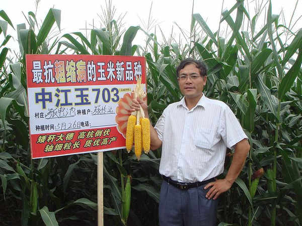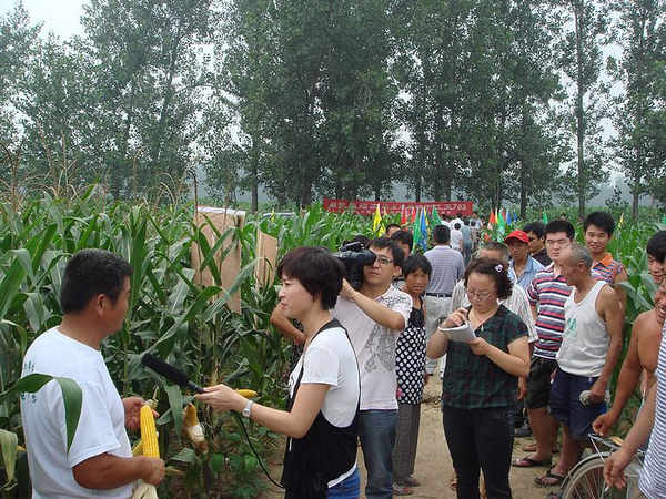 今年,"中江玉703"在遭遇十分惡劣的氣候條件下,田間表現(xiàn)仍非常突出。為加快該品種的宣傳推廣,公司在徐州召開了本年度第三次"中江玉703"抗性對比及高產(chǎn)展示現(xiàn)場觀摩會。會議對象包括山東、安徽及本省各市、縣代理商和種植戶代表。公司副總凌兆鳳主持了現(xiàn)場觀摩,豐縣種子站及農(nóng)業(yè)執(zhí)法隊領(lǐng)導應邀出席,豐縣電視臺對觀摩活動做了全程報導。示范現(xiàn)場安排在豐縣華山鎮(zhèn),播期由5月1日至6月10日,每隔3天播種一次,同時增設對比品種。"中江玉703"各個播期在對粗縮病的抗性、抗倒性、豐產(chǎn)性等方面均顯著優(yōu)于對比品種,深受種植戶和各地經(jīng)銷商的好評。