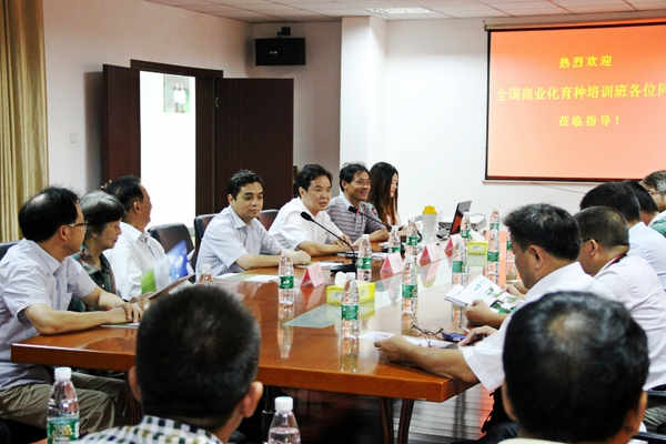 2014年8月,由農(nóng)業(yè)部種子管理局主辦,南京農(nóng)業(yè)大學(xué)承辦的“全國(guó)商業(yè)化育種培訓(xùn)班”在寧舉辦,29日,參加培訓(xùn)的種業(yè)同仁一行30余人,來(lái)到我公司考察參觀??偨?jīng)理蔣紅云、研究所所長(zhǎng)羅德祥接待了來(lái)賓。省種子管理站副站長(zhǎng)許學(xué)宏應(yīng)邀出席并講話。