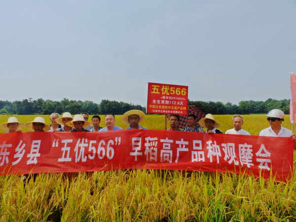 7月12-18日,公司推廣的雜交早稻新品種“五優(yōu)566”現(xiàn)場觀摩會議在江西宜豐縣、東鄉(xiāng)縣、臨川區(qū)、余都縣等地陸續(xù)展開,來自各縣鄉(xiāng)鎮(zhèn)零售商、種植大戶近200人在不同地點(diǎn)參加了現(xiàn)場觀摩,該品種是公司在南方市場推廣的第一個(gè)早雜秈稻新品種,2014年12月通過江西省審定,五優(yōu)566在江西表現(xiàn)株型好、分蘗力強(qiáng)、抗性好、出米率高、豐產(chǎn)性好等優(yōu)點(diǎn),通過不同地點(diǎn)現(xiàn)場觀摩,五優(yōu)566長勢表現(xiàn)得到經(jīng)銷商、種植大戶積極肯定和一致好評,在各地座談會上宜豐縣漆經(jīng)理和東鄉(xiāng)縣胡經(jīng)理表示來年大力推廣新品種五優(yōu)566,為農(nóng)戶提供良種,為農(nóng)戶增收增效;宜豐縣農(nóng)業(yè)局梅局長也表示好品種就該在宜豐縣大力推廣。中江種業(yè)江西分公司雄總、水稻部黃經(jīng)理都表示明年在江西為各縣農(nóng)戶提供優(yōu)質(zhì)優(yōu)良的五優(yōu)566水稻新品種。(附五優(yōu)566審定資料)