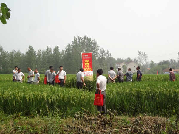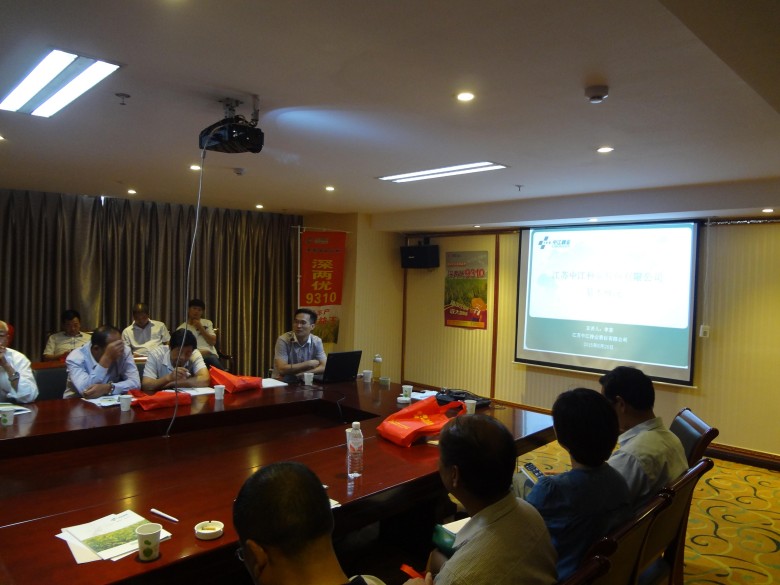 2015年8月26日,公司聯(lián)合盱眙品牌農(nóng)資,在盱眙縣就“深兩優(yōu)9310輕簡化栽培”開展了為時一天的研討會暨種植戶現(xiàn)場觀摩訂購會。18位鄉(xiāng)鎮(zhèn)零售商、6位鎮(zhèn)村干部、40多名種田大戶以及兩位糧食加工企業(yè)負責(zé)人,共計74人參加了此次會議。