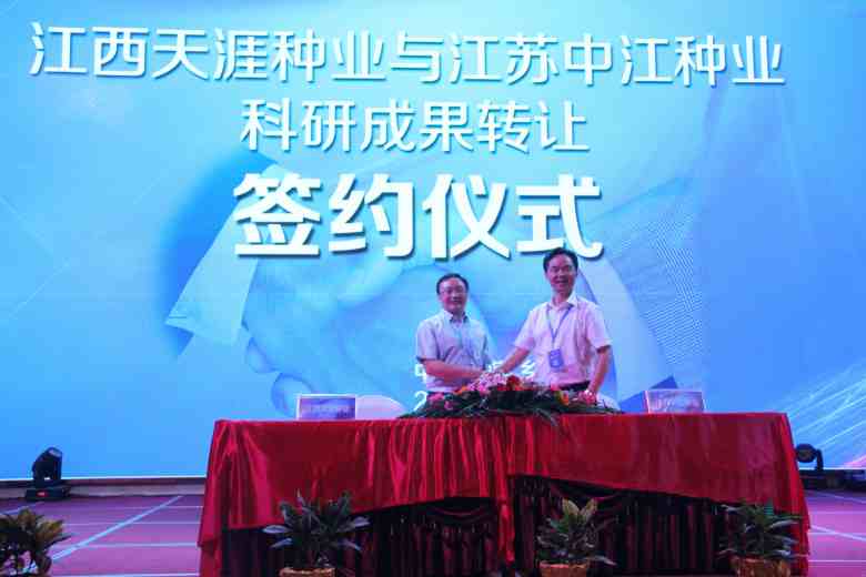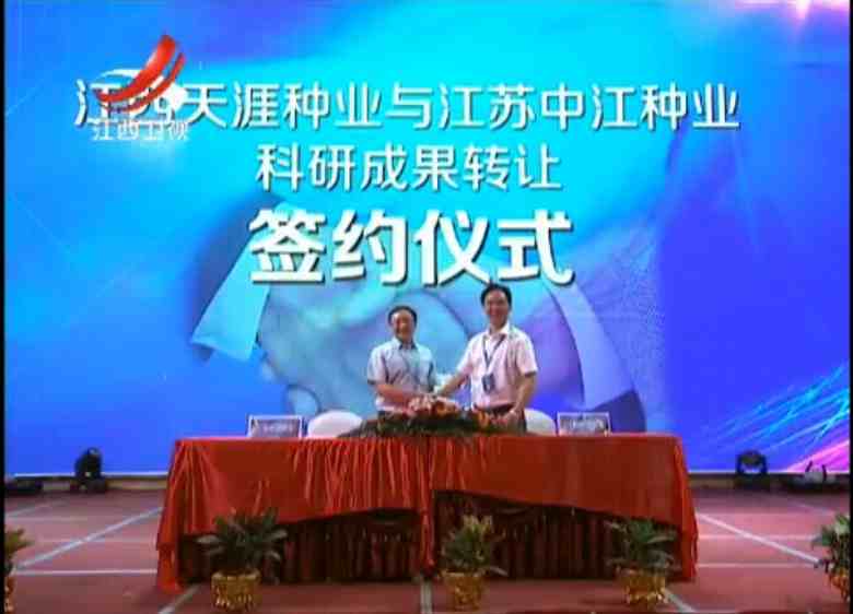 9月11―12日,由江西省萍鄉(xiāng)市政府主辦的江西水稻種業(yè)聯(lián)盟成果展會上,最新國審秈型兩系雜交中稻新品種深兩優(yōu)9310全國獨家經(jīng)營權(quán)以1080萬元天價轉(zhuǎn)讓給中江種業(yè),江蘇中江種業(yè)總經(jīng)理蔣紅云先生與江西天涯種業(yè)總經(jīng)理張少虎先生現(xiàn)場簽訂了深兩優(yōu)9310品種科研成果轉(zhuǎn)讓協(xié)議,深兩優(yōu)9310以1080萬元成交創(chuàng)下了江西省農(nóng)業(yè)領(lǐng)域單筆科研成果轉(zhuǎn)讓費最高記錄,深兩優(yōu)9310為最新國審兩系雜交秈稻品種,2015年9月通過國家審定,審定編號(國審稻2015020),深兩優(yōu)9310作中稻生育期136天左右,株高110厘米左右,莖稈粗壯,超級抗到,栽培方式可直播或拋秧輕簡化栽培;株型緊湊、劍葉挺拔,好打藥防治病蟲害;抗逆性強,抗高低溫能力強;分蘗力強,多穗多粒,結(jié)實率高,高產(chǎn)穩(wěn)產(chǎn);后期大田熟像好、米質(zhì)優(yōu),米飯適口性好等優(yōu)點。簽約會前蔣總還考察了江西萍鄉(xiāng)市、高安市、南昌縣等地深兩優(yōu)9310的大田示范表現(xiàn),公司副總經(jīng)理查軍民,水稻部經(jīng)理黃國華,中江種業(yè)江西分公司總經(jīng)理熊茂龍陪同簽約和考察,江西衛(wèi)視《9月12日江西新聞聯(lián)播》、江西日報等媒體對深兩優(yōu)9310簽約會進(jìn)行了報道。(http://tv.cntv.cn/video/C11099/2a09604419853de039823ac80a4e5c44,江西新聞聯(lián)播鏈接)