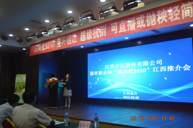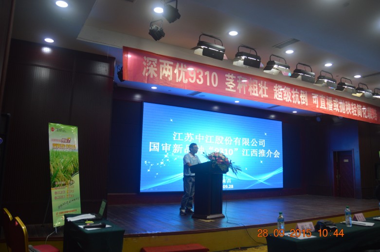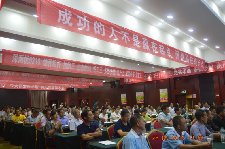 9月28-29日,國審新品種“深兩優(yōu)9310”江西推介會在南昌舉行,來自全省200多位經(jīng)銷商、種植大戶參加會議,公司董事長王福銀,副總經(jīng)理查軍民,江西農(nóng)科院水稻所所長尹建華,江西農(nóng)業(yè)大學(xué)農(nóng)學(xué)院副院長朱昌蘭,南昌市種子管局書記夏忠志,南昌市農(nóng)科院院長馬眾文,江西分公司總經(jīng)理熊茂龍等領(lǐng)導(dǎo)出席會議,會議由水稻種子事業(yè)部經(jīng)理黃國華主持。