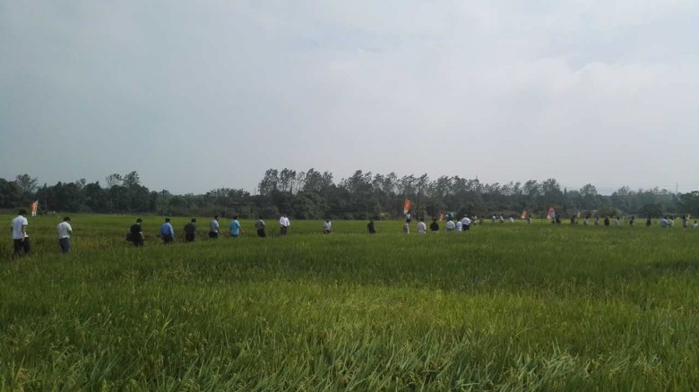 首先江西分公司熊茂龍總經(jīng)理致歡迎詞,對來會嘉賓表示最熱烈歡迎。種植大戶代表新建縣熊會平、永修縣姜道華分別介紹了“深兩優(yōu)9310” 100畝直播田和移栽田的種植表現(xiàn)情況;經(jīng)銷商代表鄱陽縣王躍進(jìn)經(jīng)理、新余市艾建勇經(jīng)理分別介紹了本地區(qū)“深兩優(yōu)9310”示范推廣情況;水稻種子事業(yè)部經(jīng)理黃國華介紹了“深兩優(yōu)9310”特征特性及江西各地推廣示范情況江;江西分公司熊總對“深兩優(yōu)9310”市場運(yùn)作打算做了說明;公司副總經(jīng)理查軍民介紹了公司雜交水稻事業(yè)發(fā)展規(guī)劃及“深兩優(yōu)9310”生產(chǎn)情況。隨后江西農(nóng)業(yè)大學(xué)農(nóng)學(xué)院朱昌蘭院長、江西農(nóng)科院水稻所尹建華所長分別做了講話,朱院長希望加強(qiáng)校企合作、選擇好的合作伙伴,加快江西農(nóng)大新品種科研成果轉(zhuǎn)化。尹所長希望在科研上加強(qiáng)同中江種業(yè)合作,并從資深專家的角度對“深兩優(yōu)9310”的技術(shù)栽培做了深入解讀。最后王福銀董事長做總結(jié)講話,王董事長首先對各位領(lǐng)導(dǎo)、專家、經(jīng)銷商朋友多年來支持中江種業(yè)事業(yè)的發(fā)展表示衷心感謝,同時介紹了公司發(fā)展概況,“深兩優(yōu)9310”在公司雜交水稻品種建設(shè)上又邁出了可喜的一步,引起業(yè)內(nèi)經(jīng)銷商、專家朋友廣泛關(guān)注表示充分肯定,公司將不斷加強(qiáng)科研合作,不斷推出雜交水稻新品種,同經(jīng)銷商朋友互利共贏,共創(chuàng)美好未來。29號上午來賓朋友們觀摩了“深兩優(yōu)9310”在新建縣溪霞鎮(zhèn)100畝直播田和永修縣艾城鎮(zhèn)100畝移栽田,“深兩優(yōu)9310”田間表現(xiàn)贏得來賓朋友的一致好評,當(dāng)天中午現(xiàn)場就有經(jīng)銷商、種植大戶預(yù)付種子定金和簽訂銷售合同。