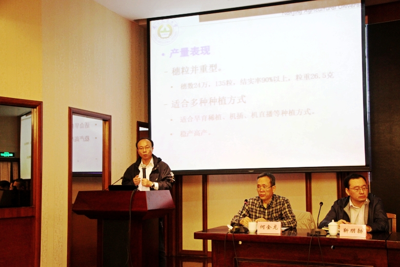 其后在會(huì)場(chǎng),萬(wàn)建民院士、丁艷峰副校長(zhǎng)分別作 “優(yōu)質(zhì)食味軟米新品種寧粳8號(hào)選育及品種特性”及“寧粳8號(hào)高產(chǎn)栽培技術(shù)設(shè)計(jì)”的技術(shù)培訓(xùn)指導(dǎo)。如東縣作栽站、溧陽(yáng)市種子管理站相關(guān)人員分別作了“寧粳8號(hào)”示范種植等情況的典型交流。