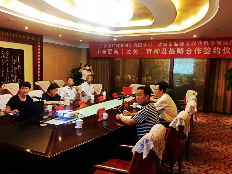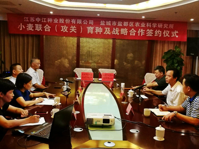 為適應(yīng)農(nóng)業(yè)供給側(cè)改革需要,加強(qiáng)科企合作,整合優(yōu)勢資源,協(xié)同創(chuàng)新,聯(lián)合攻關(guān)育種。8月12日上午,公司與鹽城市鹽都區(qū)農(nóng)業(yè)科學(xué)研究所小麥“聯(lián)合(攻關(guān))育種及合作開發(fā)”戰(zhàn)略合作簽約儀式在鹽城舉行。鹽城市種子管理站劉標(biāo)書記,鹽都區(qū)農(nóng)委陳志清副主任,鹽都區(qū)種子管理站洪全國站長等領(lǐng)導(dǎo)、專家應(yīng)邀參加。會議由鹽都農(nóng)委陳志清副主任主持。