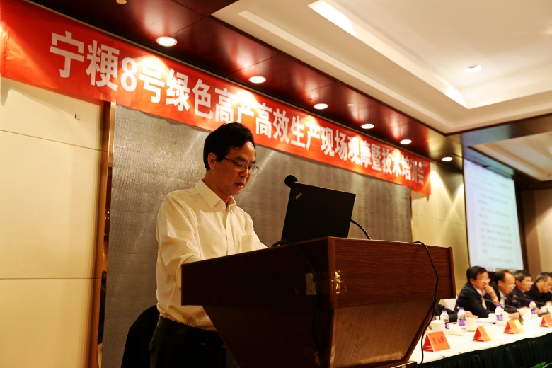 萬(wàn)建民院士作了“優(yōu)質(zhì)食味軟米新品種寧粳8號(hào)選育及品種特性”報(bào)告;丁艷鋒教授為大會(huì)作了“寧粳8號(hào)高產(chǎn)栽培技術(shù)”專題培訓(xùn)。