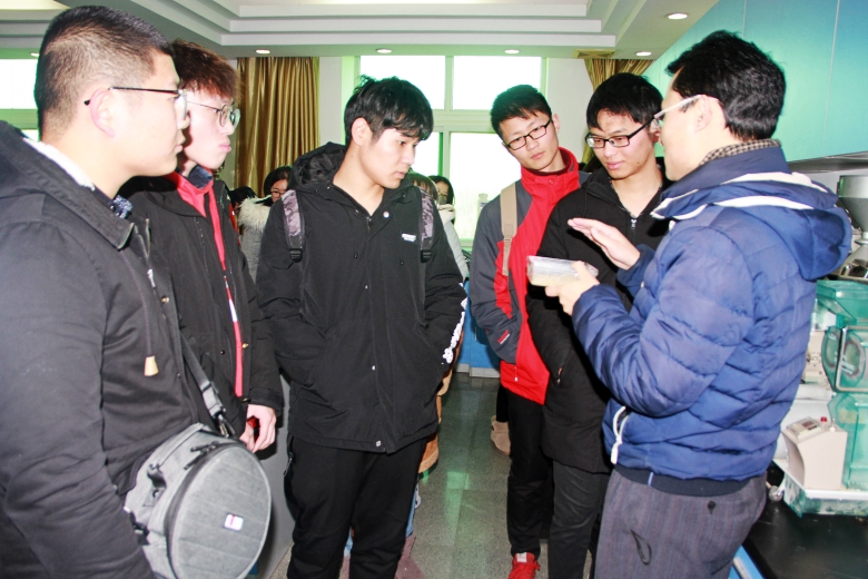 12月28日,冷風(fēng)刺骨,卻擋不住莘莘學(xué)子求知的步伐。在揚(yáng)州大學(xué)農(nóng)學(xué)院種子科學(xué)系主任許如根教授的帶領(lǐng)下,師生一行70余人來我公司開展社會實(shí)踐活動。師生們先后參觀了公司種子質(zhì)檢中心、種子倉儲加工中心,并就所學(xué)的書本知識與現(xiàn)場技術(shù)人員進(jìn)行了學(xué)習(xí)交流。