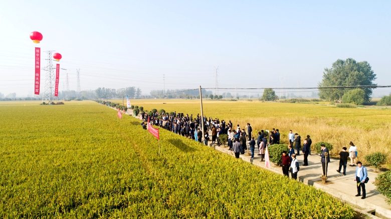 10月19日,“寧粳8號(hào)”綠色高質(zhì)高效生產(chǎn)現(xiàn)場(chǎng)觀摩暨技術(shù)培訓(xùn)會(huì)在公司所在地六合成功召開(kāi)。中國(guó)農(nóng)業(yè)科學(xué)院原黨組書(shū)記陳萌山,江蘇省人大常委會(huì)原副主任俞敬忠,中國(guó)農(nóng)科院副院長(zhǎng)萬(wàn)建民院士,南京農(nóng)業(yè)大學(xué)黨委書(shū)記陳利根教授,常州市政協(xié)張耀鋼副主席,江蘇省農(nóng)業(yè)農(nóng)村廳唐明珍總農(nóng)藝師,南京農(nóng)業(yè)大學(xué)丁艷鋒副校長(zhǎng),江蘇省種業(yè)協(xié)會(huì)張堅(jiān)勇會(huì)長(zhǎng)及省農(nóng)業(yè)農(nóng)村廳相關(guān)處室負(fù)責(zé)人出席會(huì)議;江蘇沿江和蘇南八市農(nóng)業(yè)農(nóng)村局分管局長(zhǎng)、農(nóng)技推廣系統(tǒng)、種子管理系統(tǒng)代表,公司蘇皖浙三省經(jīng)銷(xiāo)商代表及種田大戶(hù)代表210余人參加會(huì)議。會(huì)議由省種子管理站何金龍站長(zhǎng)主持,六合區(qū)人民政府李長(zhǎng)征副區(qū)長(zhǎng)致歡迎詞。