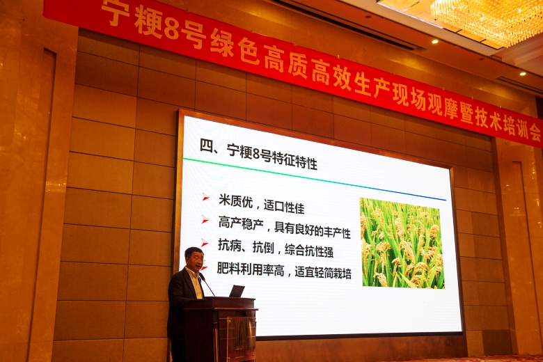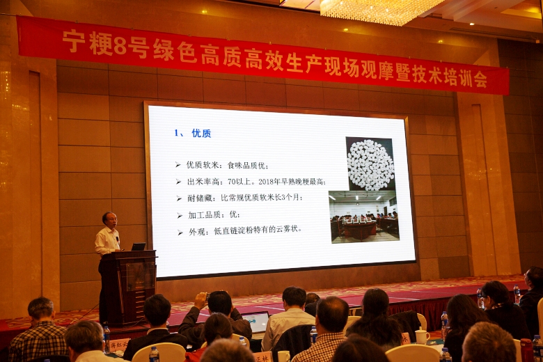 萬(wàn)建民院士作了《“寧粳8號(hào)”的選育及特征特性介紹》報(bào)告;南京農(nóng)業(yè)大學(xué)丁艷鋒副校長(zhǎng)為大會(huì)作了《“寧粳8號(hào)”優(yōu)質(zhì)高效栽培技術(shù)》專(zhuān)題培訓(xùn)。省農(nóng)技推廣總站管永祥站長(zhǎng)作了《全力推進(jìn)稻米產(chǎn)業(yè)高質(zhì)量發(fā)展,努力打造新時(shí)代江蘇魚(yú)米之鄉(xiāng)》報(bào)告。