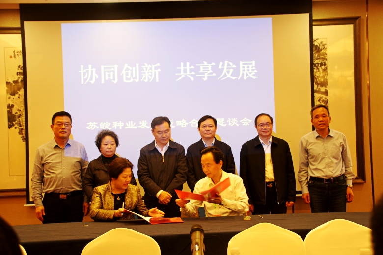 本屆全國種子雙交會內(nèi)容豐富,議程緊湊。10月30日下午,公司作為江蘇省種業(yè)協(xié)會秘書長單位,參加了江蘇、安徽兩省種子管理站和種業(yè)協(xié)會聯(lián)合舉辦的“蘇皖種業(yè)發(fā)展戰(zhàn)略合作懇談會”。會上,蔣總作為江蘇省種業(yè)協(xié)會常務副會長、秘書長,介紹了江蘇省種業(yè)協(xié)會工作情況,并簽署了江蘇省種業(yè)協(xié)會與安徽省種子協(xié)會的《蘇皖種業(yè)發(fā)展戰(zhàn)略合作框架協(xié)議書》。