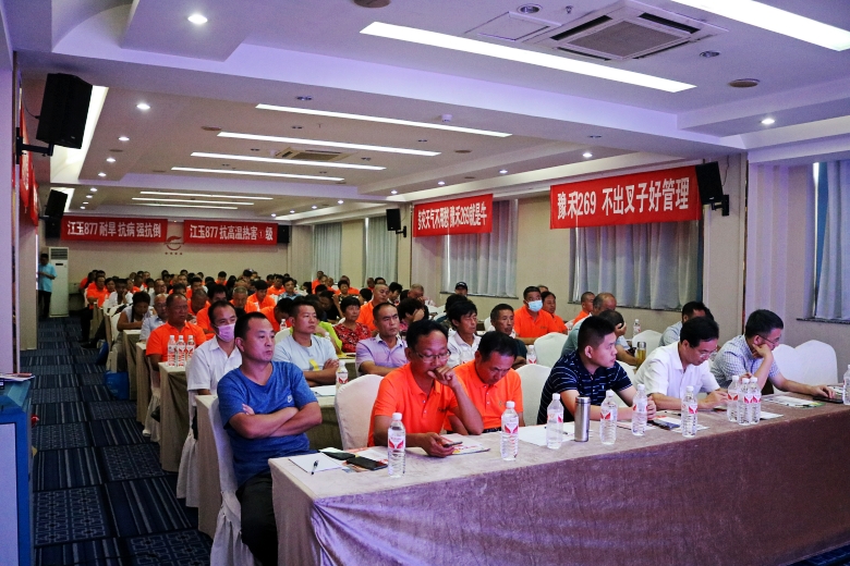 接著召開了會議,由孔志榮總助主持??卓偨榻B了公司的發(fā)展概況、玉米產(chǎn)業(yè)布局以及與大家共同發(fā)展的愿景;經(jīng)銷商代表也紛紛發(fā)言,對 “豫禾269”“江玉877”的特征以及優(yōu)勢表示認可,并對與中江種業(yè)的合作充滿信心;山東市場負責人吳東德向大家全面介紹了“豫禾269”“江玉877”為什么是個好品種,以及在各地的優(yōu)秀表現(xiàn)。