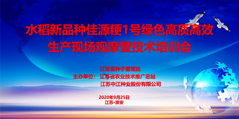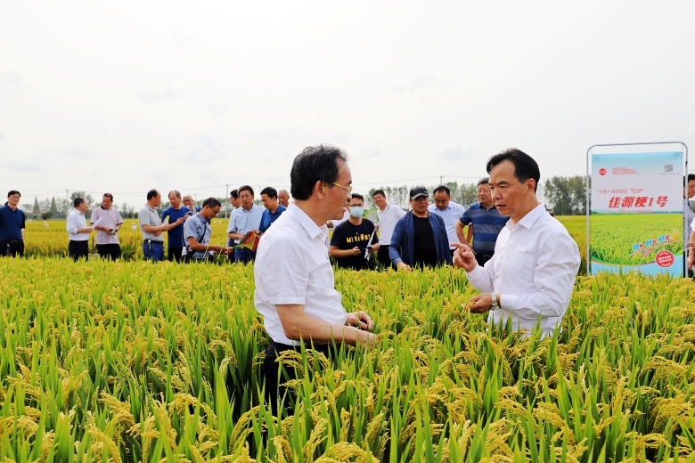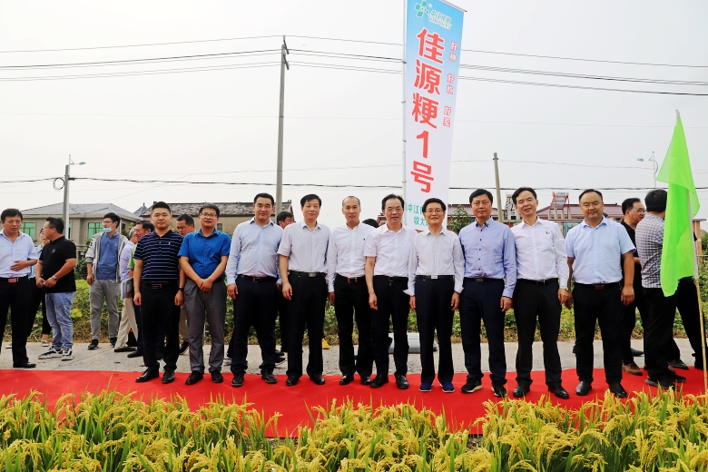 9月25日,公司中熟中粳稻新品種“佳源粳1號”綠色高質(zhì)高效生產(chǎn)現(xiàn)場觀摩培訓(xùn)會在淮安市白馬湖農(nóng)場成功召開。江蘇省人大常委會原副主任俞敬忠,江蘇省農(nóng)業(yè)農(nóng)村廳副廳長蔡恒,江蘇省種子管理站站長何金龍,江蘇省農(nóng)業(yè)技術(shù)推廣總站二級研究員倪玉峰出席會議;蘇北五市農(nóng)業(yè)農(nóng)村局分管局長、種子管理系統(tǒng)、農(nóng)技推廣系統(tǒng)代表,公司淮北地區(qū)經(jīng)銷商代表及種田大戶代表220余人參加會議。農(nóng)業(yè)農(nóng)村廳二級巡視員俞衛(wèi)東主持會議,白馬湖農(nóng)場黨委書記姚春華致歡迎詞?;窗彩形睍洀垏汉透笔虚L肖進(jìn)方會前到賓館看望了參會代表。