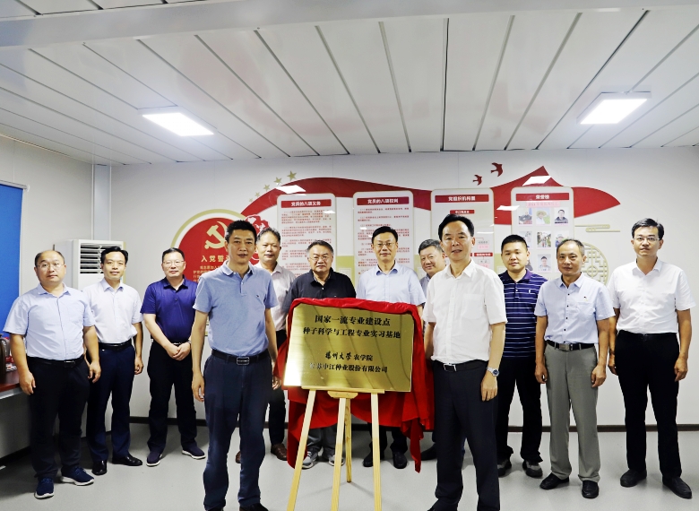 8月1日下午,揚州大學(xué)農(nóng)學(xué)院“國家一流專業(yè)建設(shè)點——種子科學(xué)與工程專業(yè)實習(xí)基地”揭牌儀式在公司圓滿舉行。揚州大學(xué)農(nóng)學(xué)院書記王軍、院長嚴長杰、副書記陸江峰、副院長陳源、教授郭文善、許如根、郭寶??;公司總經(jīng)理蔣紅云、副總經(jīng)理張鐵耀、凌兆鳳、科研總監(jiān)羅德祥、科研所副所長陸建康等共同出席了本次儀式。