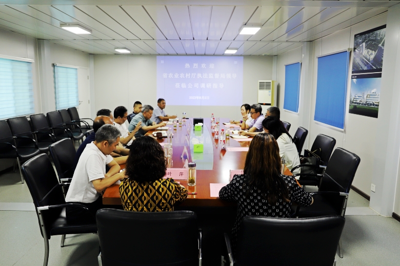 8月2日上午,省農(nóng)業(yè)農(nóng)村廳執(zhí)法監(jiān)督局局長王明濤率調(diào)研組蒞臨公司調(diào)研指導(dǎo),公司總經(jīng)理蔣紅云、副總經(jīng)理凌兆鳳、劉永健 、張鐵耀、吳強(qiáng)及科研總監(jiān)羅德祥、總經(jīng)理助理王文等陪同調(diào)研座談。