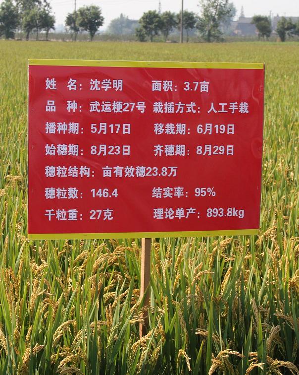 與會(huì)領(lǐng)導(dǎo)、專家和代表們對(duì)現(xiàn)場(chǎng)進(jìn)行觀摩,海南鎮(zhèn)農(nóng)科站肖云站長(zhǎng)對(duì)超高產(chǎn)攻關(guān)示范方的栽培管理做了全面介紹。通過“精苗穩(wěn)前,控蘗優(yōu)中,大穗強(qiáng)后”的精確定量栽培技術(shù)核心管理,“武運(yùn)粳27號(hào)”示范方達(dá)到了良好的效果。通過9月20-23日田間考察:畝平均有效穗24.8萬,穗粒數(shù)平均136.5,按常年結(jié)實(shí)率93%、千粒重27克計(jì)算,平均理論單產(chǎn)850公斤。